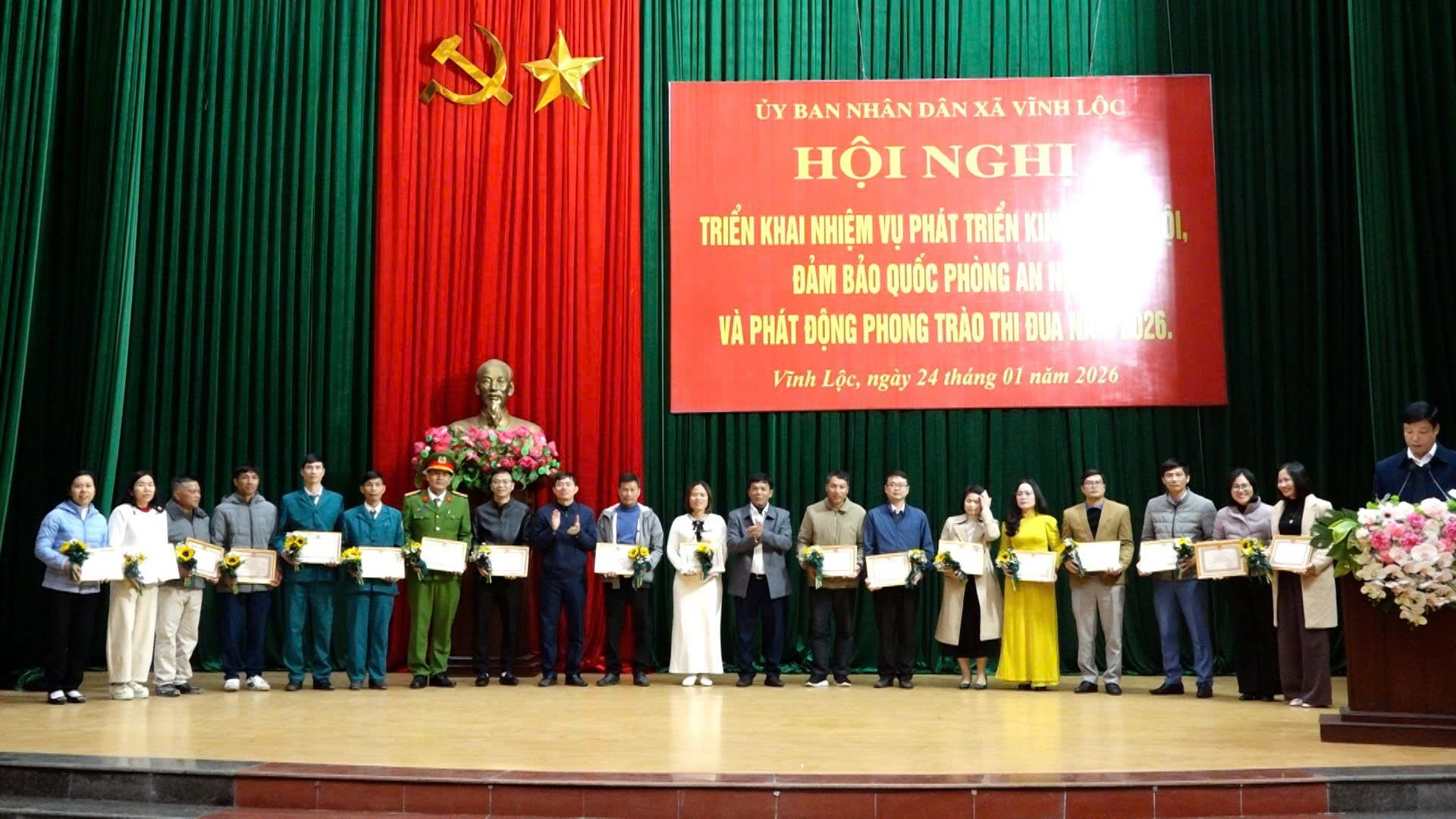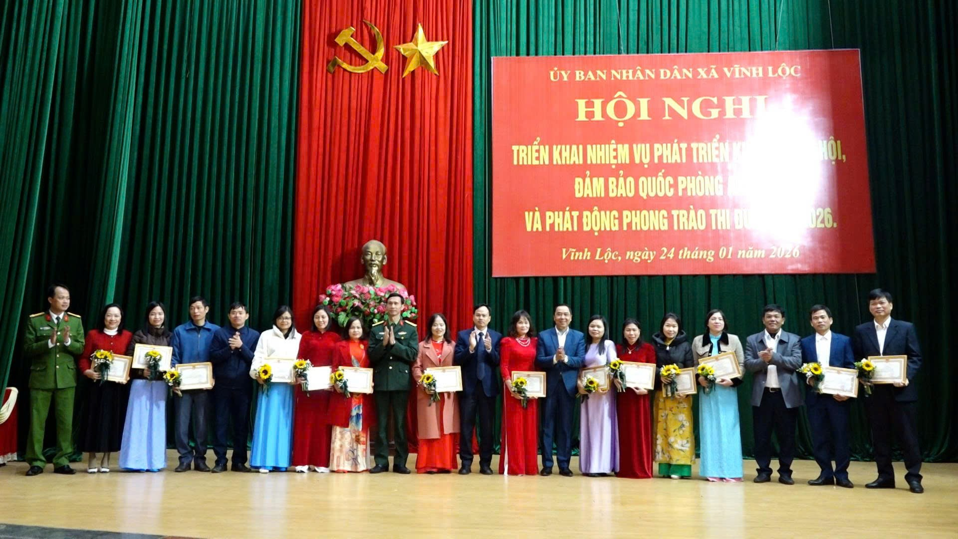 Sáng ngày 24/1, UBND xã Vĩnh Lộc tổ chức Hội nghị triển khai nhiệm vụ phát triển kinh tế – xã hội, bảo đảm quốc phòng – an ninh và phát động phong trào thi đua năm 2026; đồng thời tổng kết công tác thi đua, khen thưởng năm 2025. Đồng chí Trịnh Ngọc Tuân – Chủ tịch UBND xã, đồng chí Trần Thanh Bình – Phó Chủ tịch UBND xã chủ trì hội nghị.