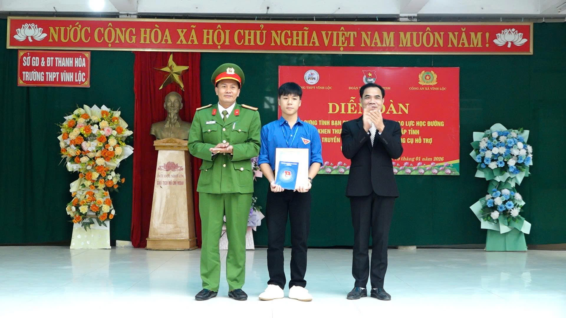 Sáng ngày 19 tháng 1, tại Trường THPT Vĩnh Lộc, Đoàn Thanh niên xã Vĩnh Lộc đã tổ chức Diễn đàn “Xây dựng tình bạn đẹp – nói không với bạo lực học đường” gắn với tuyên dương học sinh đạt danh hiệu “Học sinh ba tốt” cấp tỉnh.