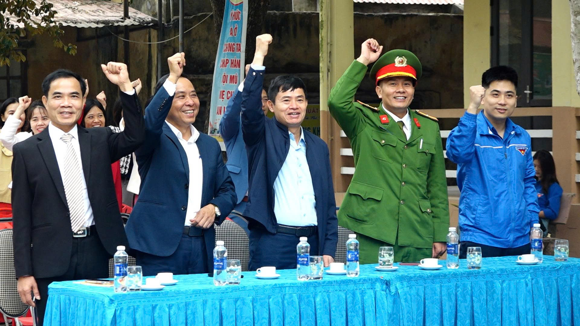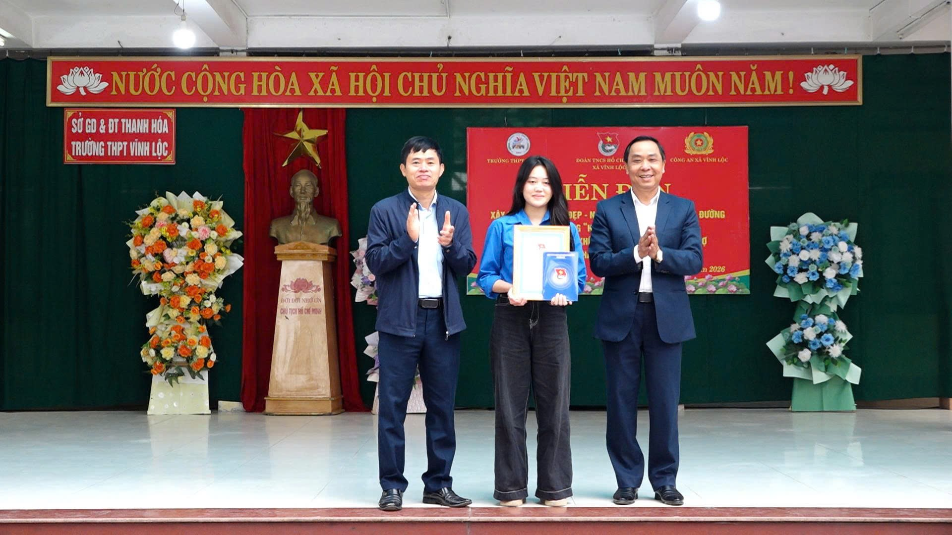Tham dự chương trình có các đồng chí Trần Văn Khánh – Ủy viên Ban Thường vụ Đảng ủy, Chủ tịch Ủy ban Mặt trận Tổ quốc xã; Trần Thanh Bình – Ủy viên Ban Thường vụ Đảng ủy, Phó Chủ tịch UBND xã; Thiếu tá Nguyễn Mạnh Hùng – Phó Trưởng Công an xã; đồng chí Nguyễn Văn Tinh – Hiệu trưởng Trường THPT Vĩnh Lộc; đồng chí Mai Tuấn Linh – Bí thư Đoàn Thanh niên xã, cùng các thầy cô giáo và đông đảo đoàn viên, học sinh nhà trường.