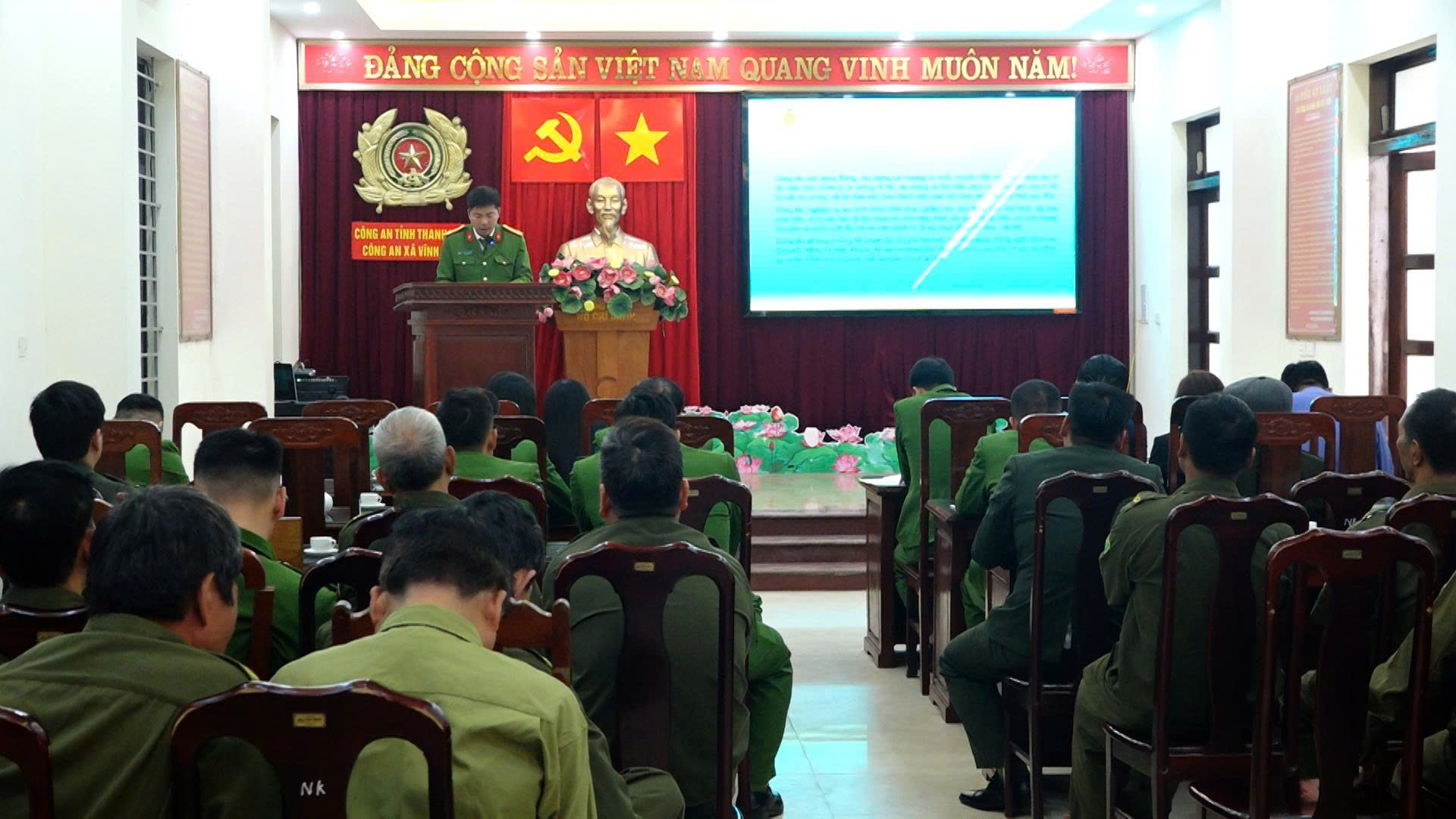 Dự và chỉ đạo hội nghị có đồng chí Bùi Thị Cẩm Tú – Phó Bí thư Thường trực Đảng ủy xã. Tham dự hội nghị có đồng chí Trần Thanh Bình – Phó Chủ tịch UBND xã; đại diện Tòa án nhân dân khu vực 7, Viện Kiểm sát nhân dân tỉnh Thanh Hóa; Văn phòng Đảng ủy xã; tập thể Chỉ huy, cán bộ, chiến sĩ Công an xã Vĩnh Lộc và các đồng chí Tổ trưởng Tổ an ninh, trật tự ở cơ sở.