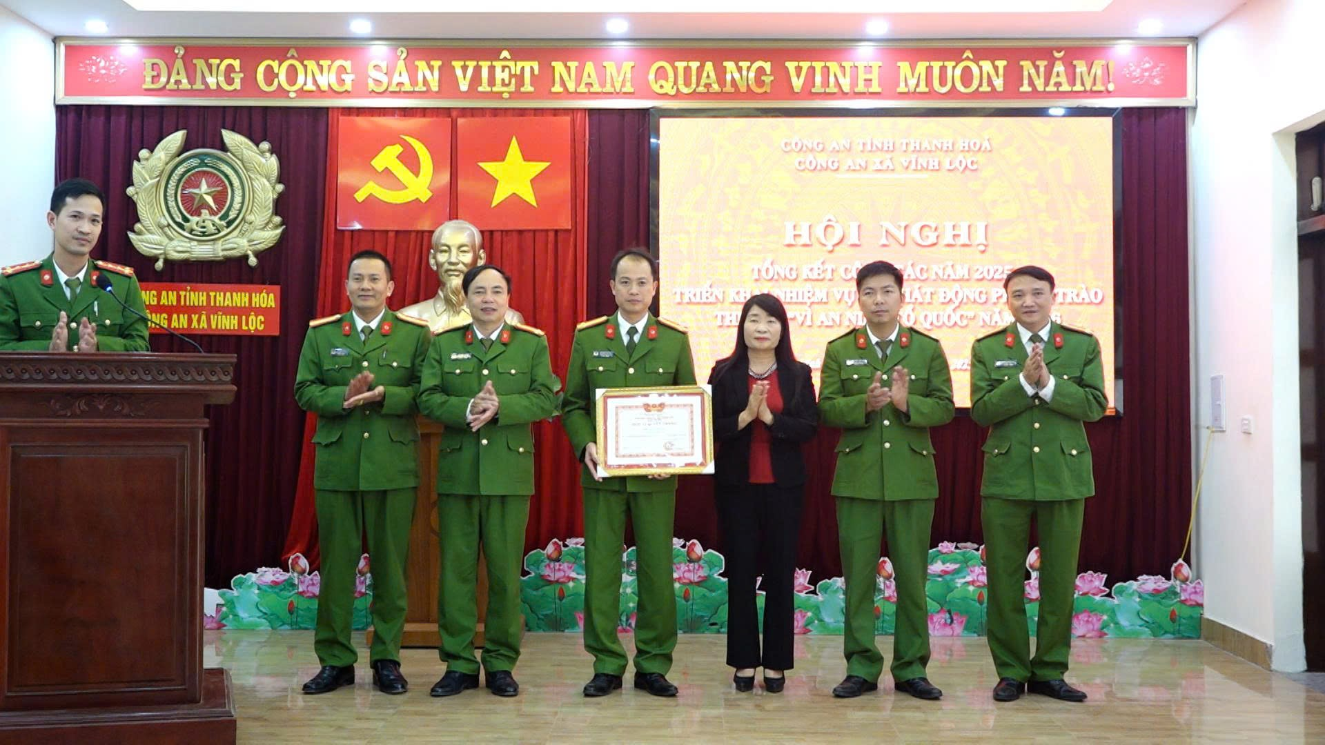 Với những kết quả đạt được, năm 2025, Công an xã Vĩnh Lộc vinh dự được Giám đốc Công an tỉnh Thanh Hóa tặng danh hiệu “Đơn vị Quyết thắng” vì có thành tích xuất sắc trong phong trào thi đua “Vì an ninh Tổ quốc”.