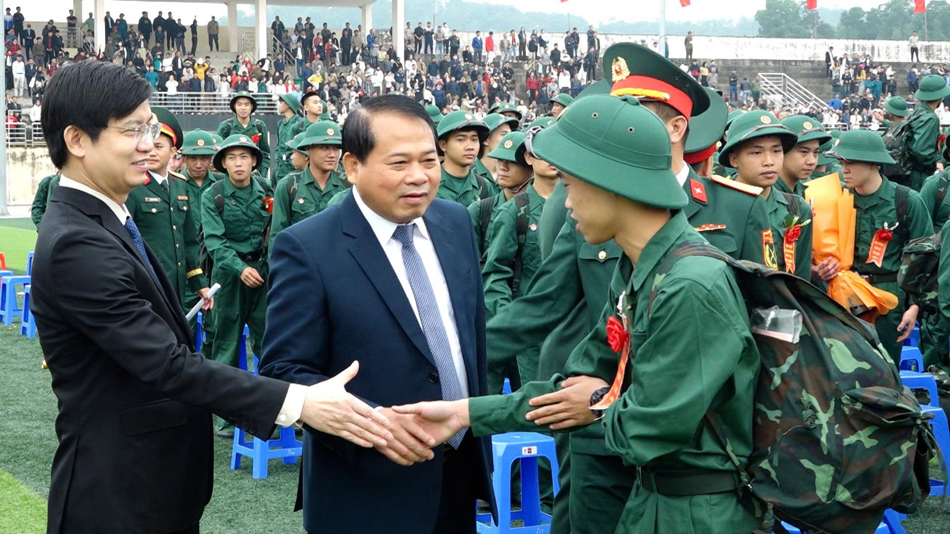 Phát biểu tại buổi lễ, đồng chí Nguyễn Văn Hùng, Ủy viên Ban Thường vụ Tỉnh ủy, Trưởng Ban Tổ chức Tỉnh ủy chúc mừng các thanh niên trúng tuyển nghĩa vụ quân sự, công an; đồng thời bày tỏ tin tưởng các tân binh sẽ phát huy truyền thống quê hương Thanh Hóa, nỗ lực rèn luyện, hoàn thành tốt nhiệm vụ được giao. Đồng chí cũng đề nghị các cấp, ngành tiếp tục quan tâm thực hiện tốt chính sách hậu phương quân đội; các đơn vị nhận quân phối hợp chặt chẽ với địa phương, tạo điều kiện để chiến sĩ mới nhanh chóng hòa nhập môi trường quân ngũ, rèn luyện và trưởng thành.