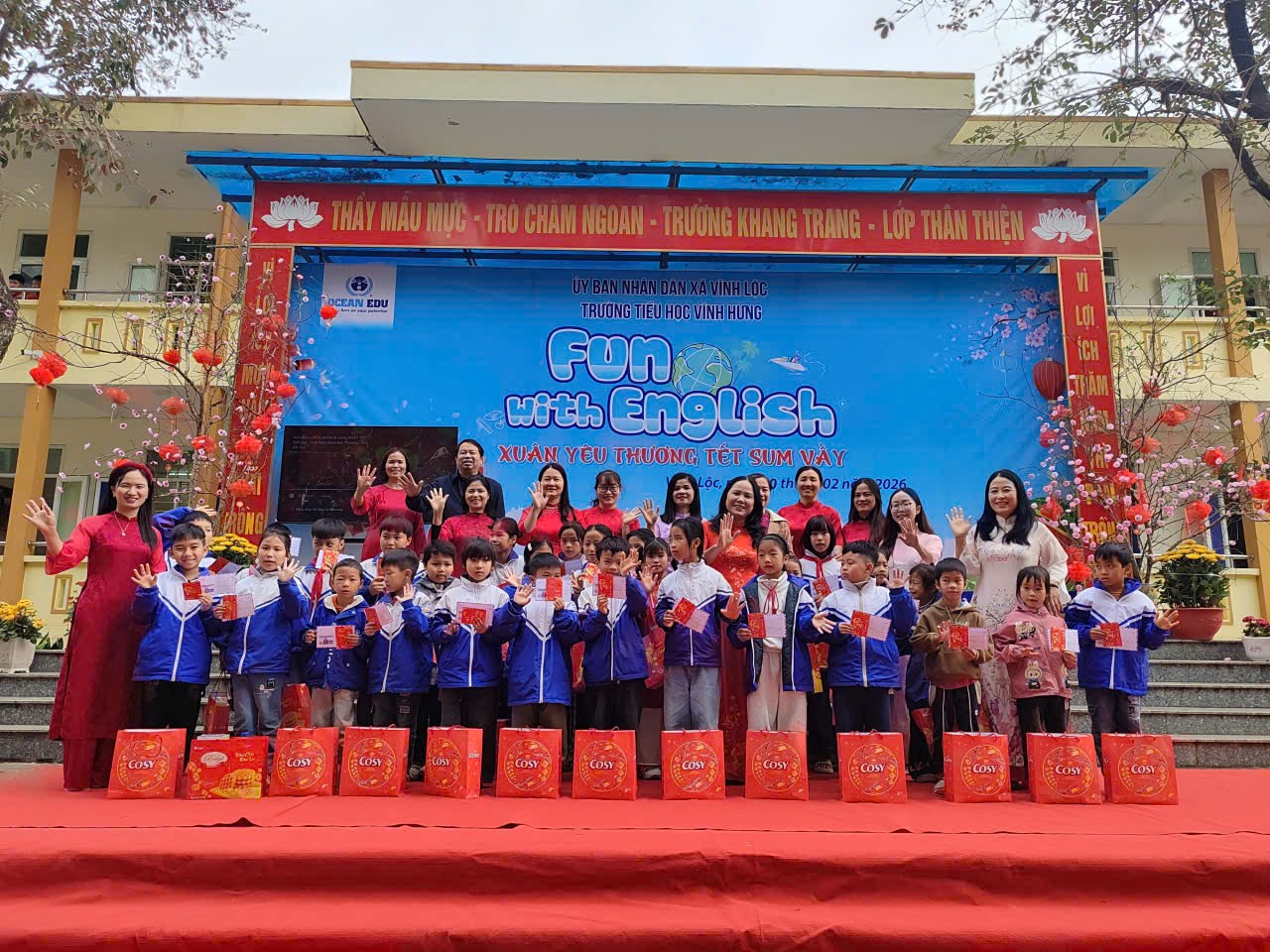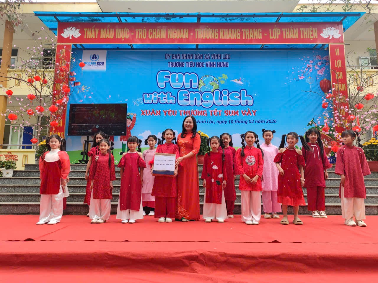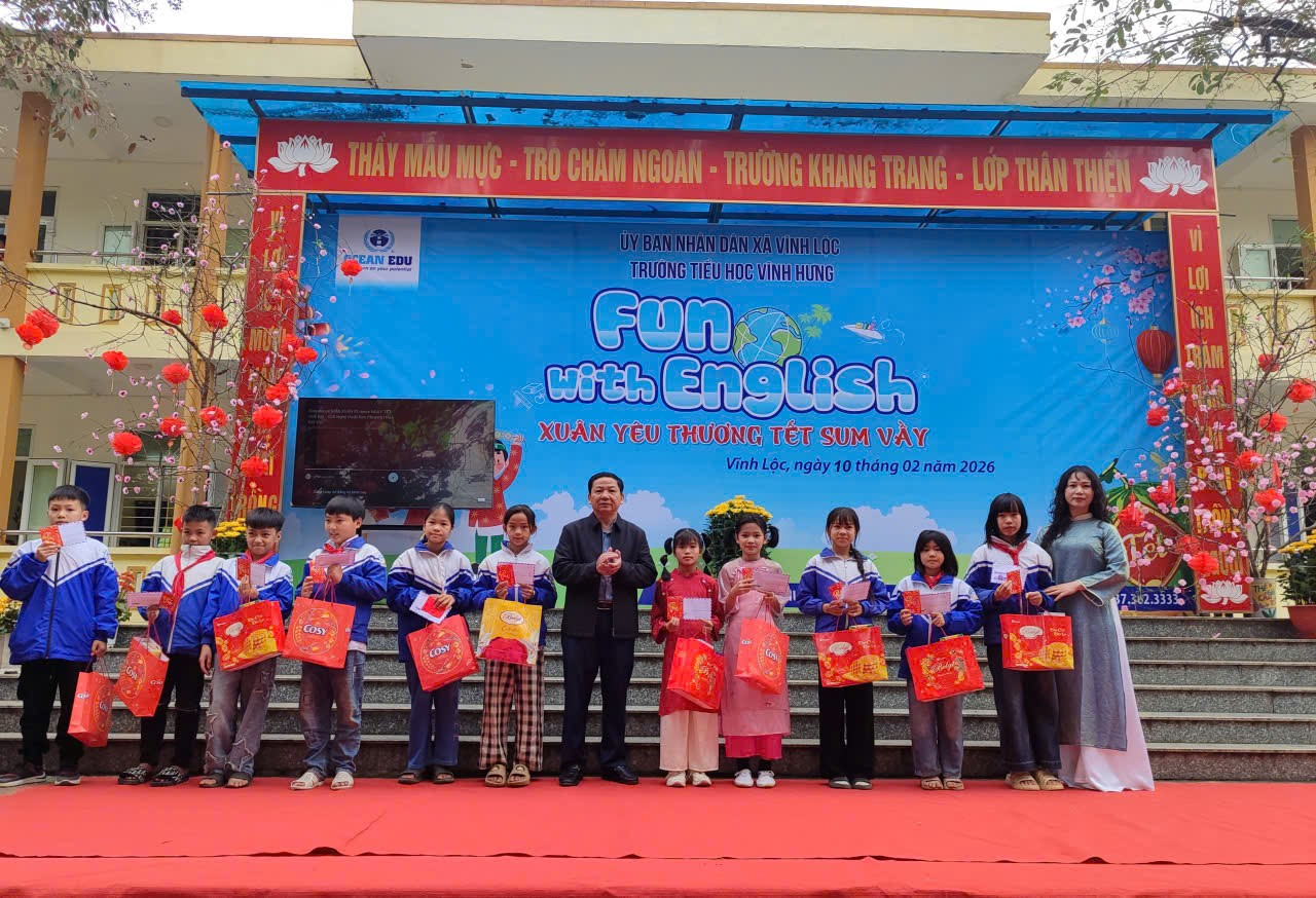Sáng ngày 10/2/2026, Trường Tiểu học Vĩnh Hưng (xã Vĩnh Lộc) đã tổ chức chương trình hoạt động ngoại khóa với chủ đề “Xuân yêu thương – Tết sum vầy 2026”, thu hút sự tham gia sôi nổi của cán bộ, giáo viên, nhân viên và toàn thể học sinh nhà trường.