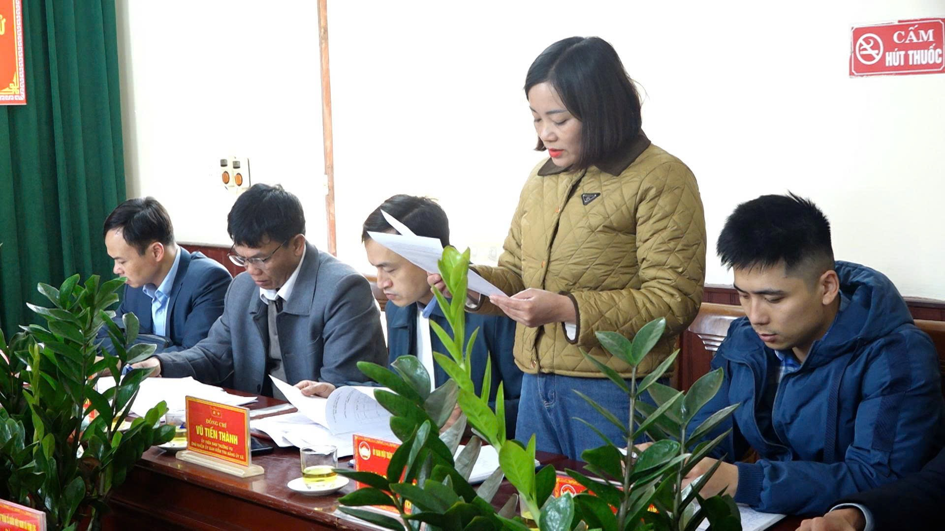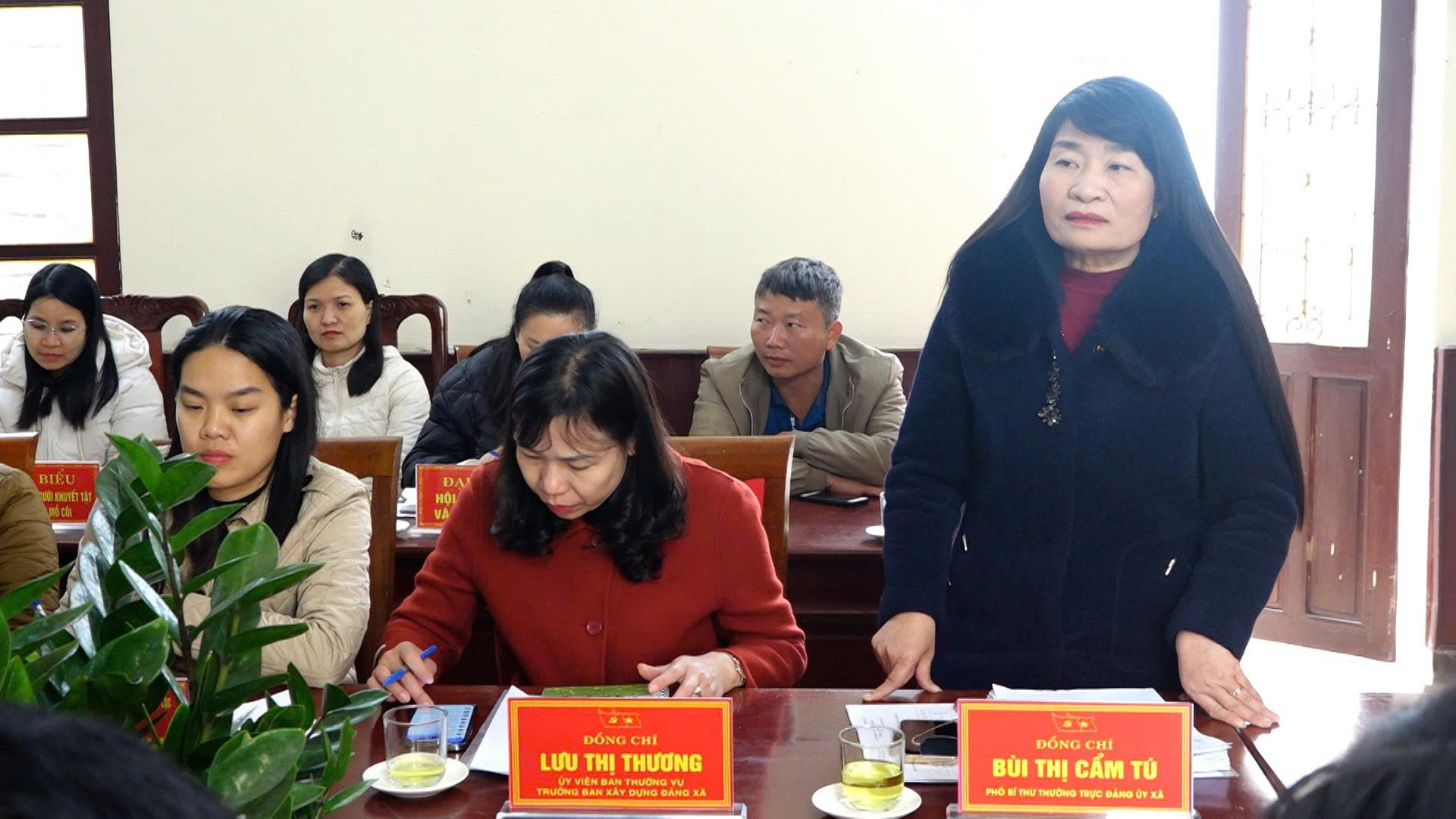 Đồng chí Bùi Thị Cẩm Tú – Phó Bí thư Thường trực Đảng ủy xã, Phó Trưởng Ban Chỉ đạo bầu cử xã phát biểu chỉ đạo tại hội nghị