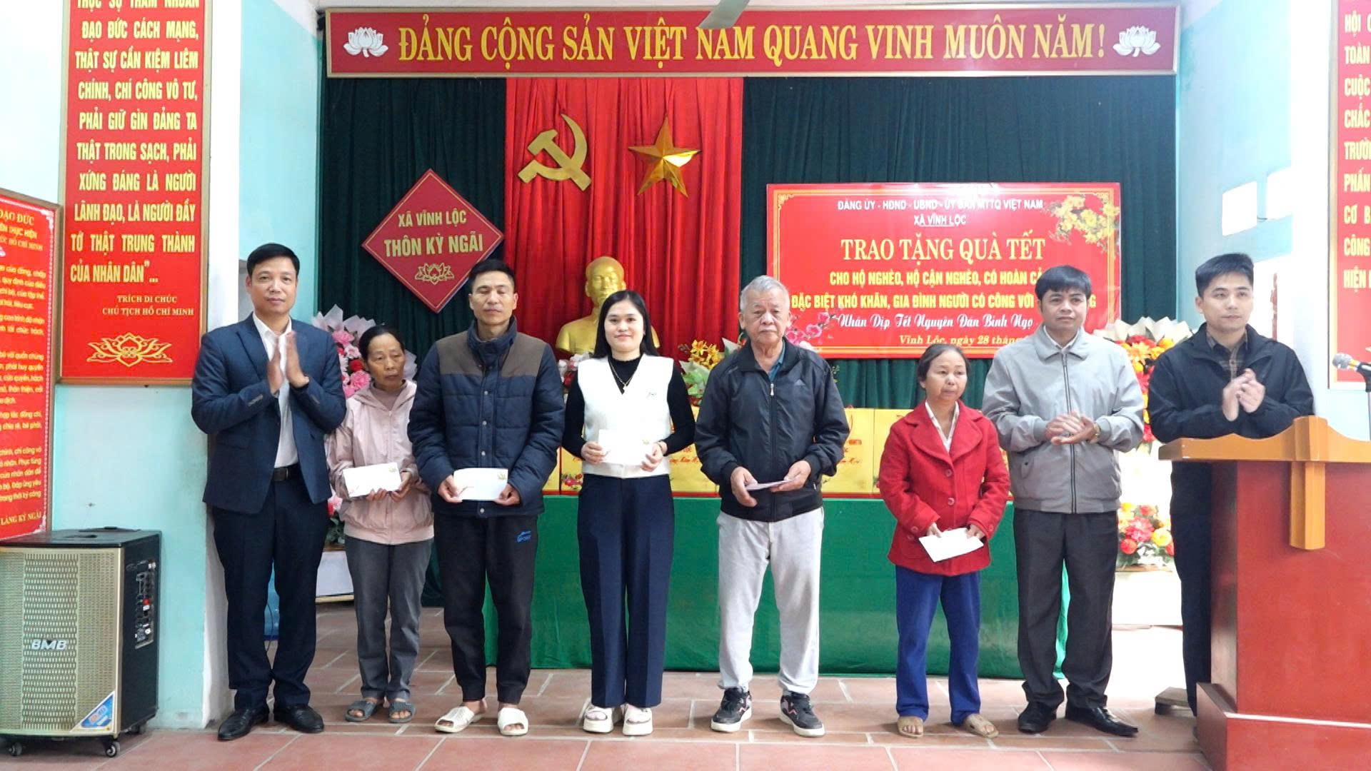 Trong đợt này, đoàn đã trao tặng quà Tết cho 68 hộ gia đình là người có công, hộ nghèo, hộ cận nghèo và các hộ có hoàn cảnh đặc biệt khó khăn trên địa bàn xã. Trong đó có 3 hộ người có công, 48 hộ gia đình nghèo, cận nghèo và 17 hộ có hoàn cảnh đặc biệt khó khăn. Với tổng số tiền trên 21 triệu đồng, số tiền trên được trích từ Quỹ “Vì người nghèo” của xã, nguồn ngân sách xã và nguồn xã hội hóa từ các nhà hảo tâm trong và ngoài xã.