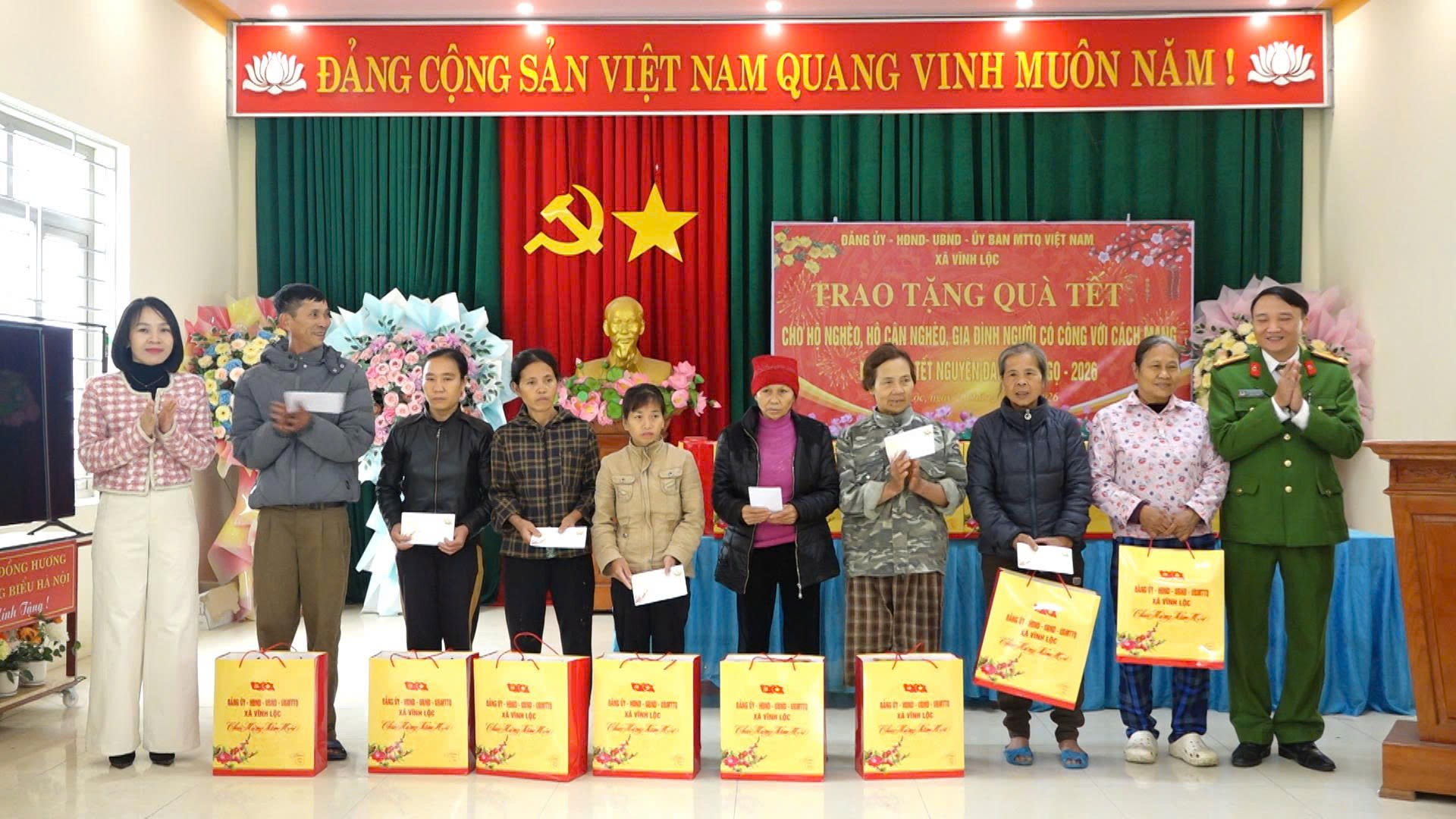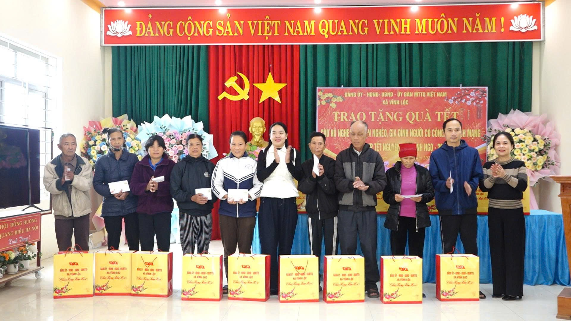 Những phần quà Tết tuy giá trị không lớn nhưng mang ý nghĩa tinh thần thiết thực, thể hiện sự quan tâm, sẻ chia kịp thời của cấp ủy Đảng, chính quyền, Mặt trận Tổ quốc và các đoàn thể xã Vĩnh Lộc đối với các gia đình chính sách, hộ nghèo, hộ cận nghèo và các đối tượng khó khăn.