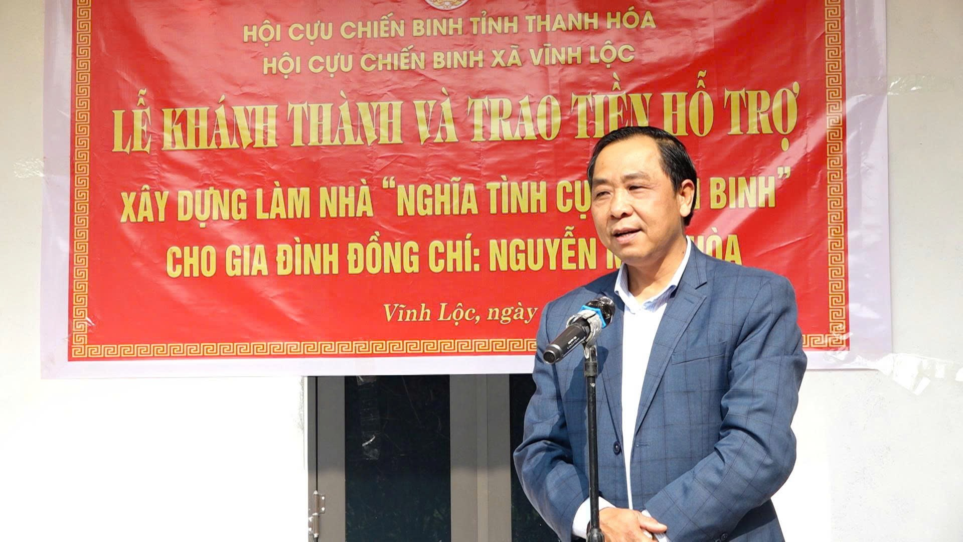 Phát biểu tại buổi lễ, đồng chí Trần Văn Khánh – Ủy viên Ban Thường vụ Đảng ủy, Chủ tịch Ủy ban MTTQ xã khẳng định: việc hỗ trợ xây dựng nhà ở cho hội viên Cựu chiến binh có hoàn cảnh khó khăn là chủ trương mang ý nghĩa nhân văn sâu sắc, thể hiện sự quan tâm, trách nhiệm của các cấp ủy Đảng, chính quyền, MTTQ và các đoàn thể đối với người có công và cựu chiến binh. Đồng chí nhấn mạnh, việc ngôi nhà được hoàn thành trước thềm Tết Nguyên đán không chỉ góp phần ổn định đời sống mà còn giúp gia đình được đón Tết trong ngôi nhà mới khang trang, ấm cúng. Đồng thời, đồng chí mong muốn gia đình tiếp tục nỗ lực vươn lên trong cuộc sống và kêu gọi các cấp, các ngành cùng Nhân dân trong thôn tiếp tục chung tay thực hiện tốt công tác an sinh xã hội, góp phần xây dựng quê hương Vĩnh Lộc ngày càng phát triển.