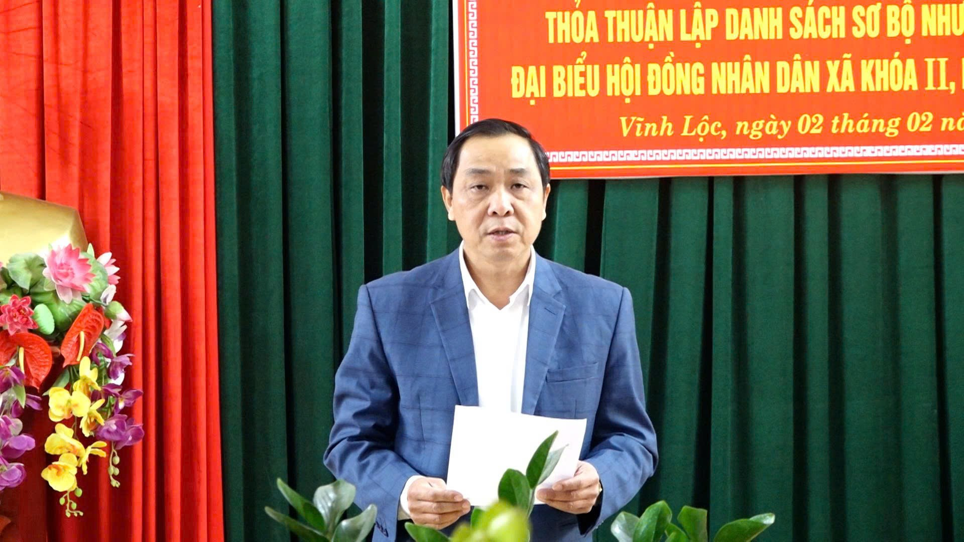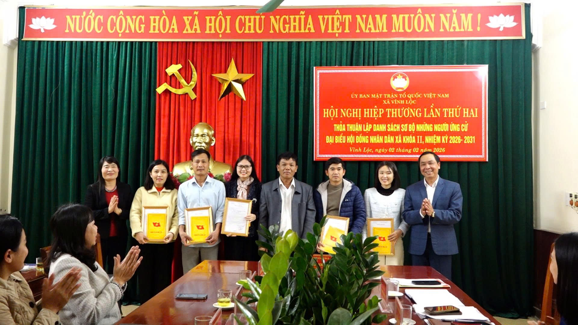 Chiều ngày 2/2/2026, Ban Thường trực Ủy ban MTTQ Việt Nam xã Vĩnh Lộc tổ chức Hội nghị hiệp thương lần thứ hai nhằm thỏa thuận lập danh sách sơ bộ những người ứng cử đại biểu Hội đồng nhân dân xã Vĩnh Lộc khóa II, nhiệm kỳ 2026–2031. Đồng chí Trần Văn Khánh – Ủy viên Ban Thường vụ Đảng ủy, Chủ tịch Ủy ban MTTQ Việt Nam xã Vĩnh Lộc chủ trì hội nghị.