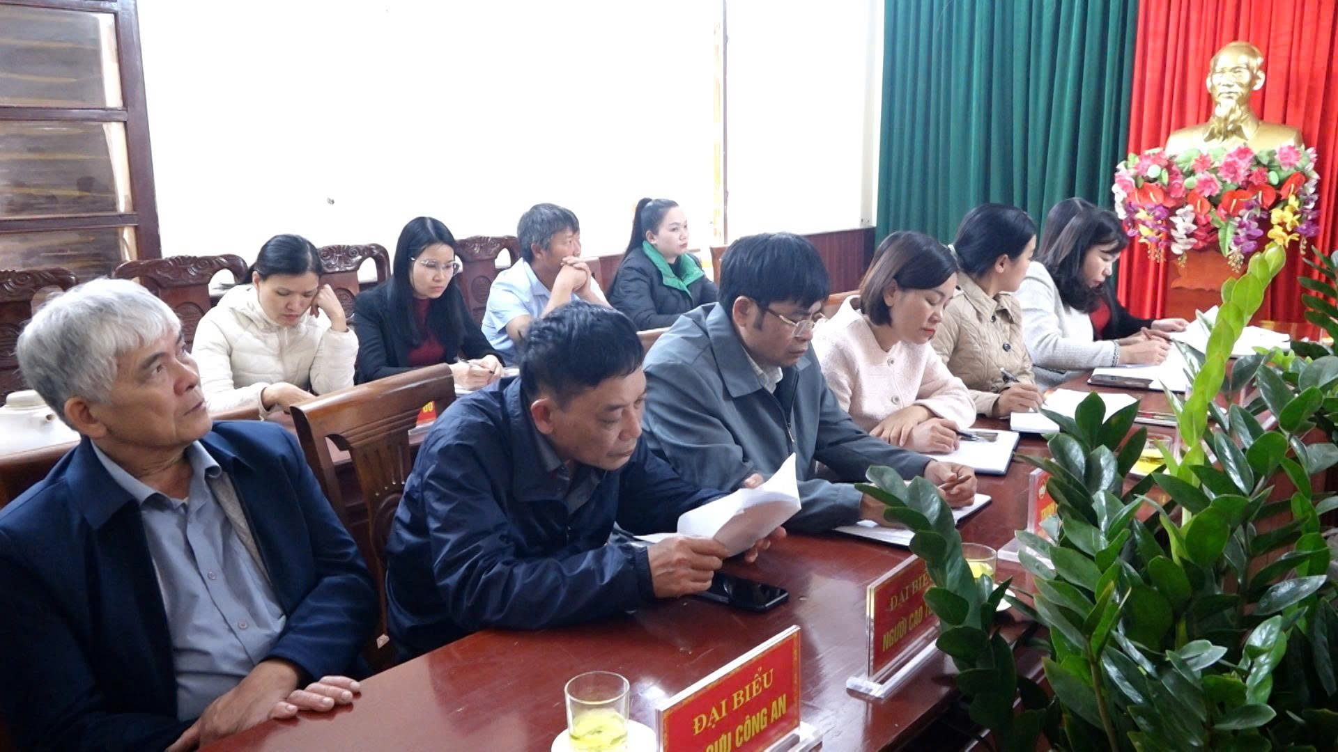 Tham dự hội nghị có đồng chí Bùi Thị Cẩm Tú – Phó Bí thư Thường trực Đảng ủy xã, Phó Trưởng Ban Chỉ đạo bầu cử xã; đồng chí Trịnh Ngọc Tuân – Phó Bí thư Đảng ủy, Chủ tịch HĐND xã, Chủ tịch Ủy ban bầu cử xã; đồng chí Nguyễn Văn Truy – Ủy viên Ban Thường vụ Đảng ủy, Phó Chủ tịch HĐND xã; Lưu Thị Thương – Ủy viên Ban Thường vụ Đảng ủy, Trưởng ban Xây dựng Đảng; đại diện Ủy ban Kiểm tra Đảng ủy, Văn phòng HĐND – UBND xã, Phòng Văn hóa – Xã hội và đại diện lãnh đạo các tổ chức thành viên của MTTQ xã.